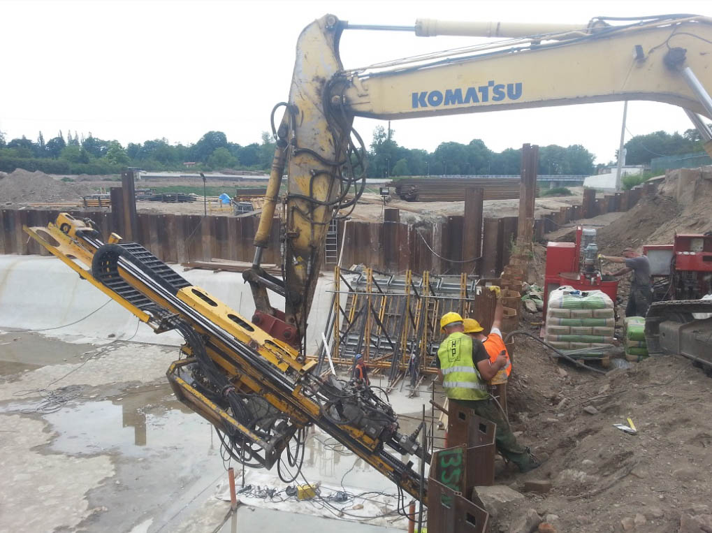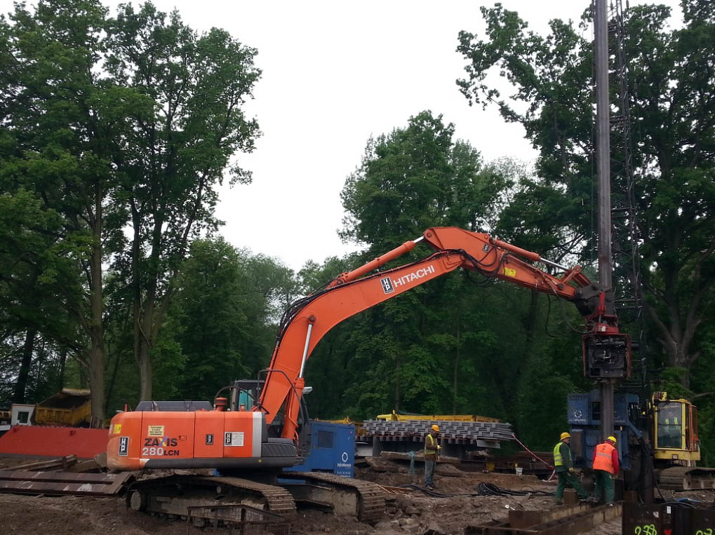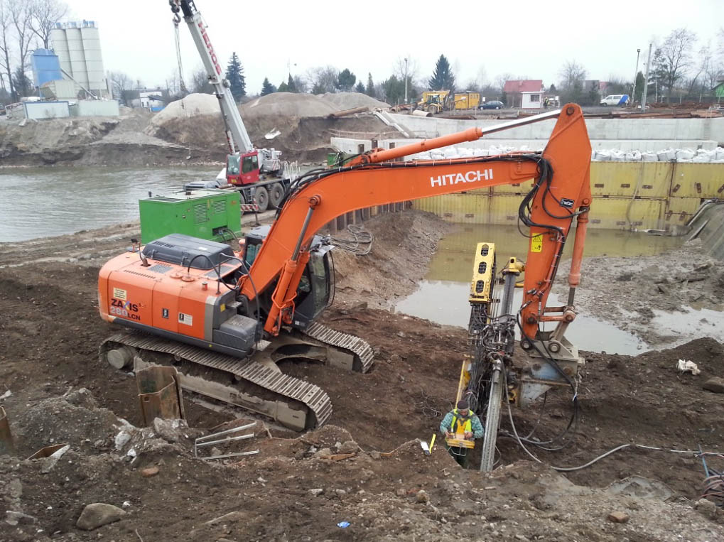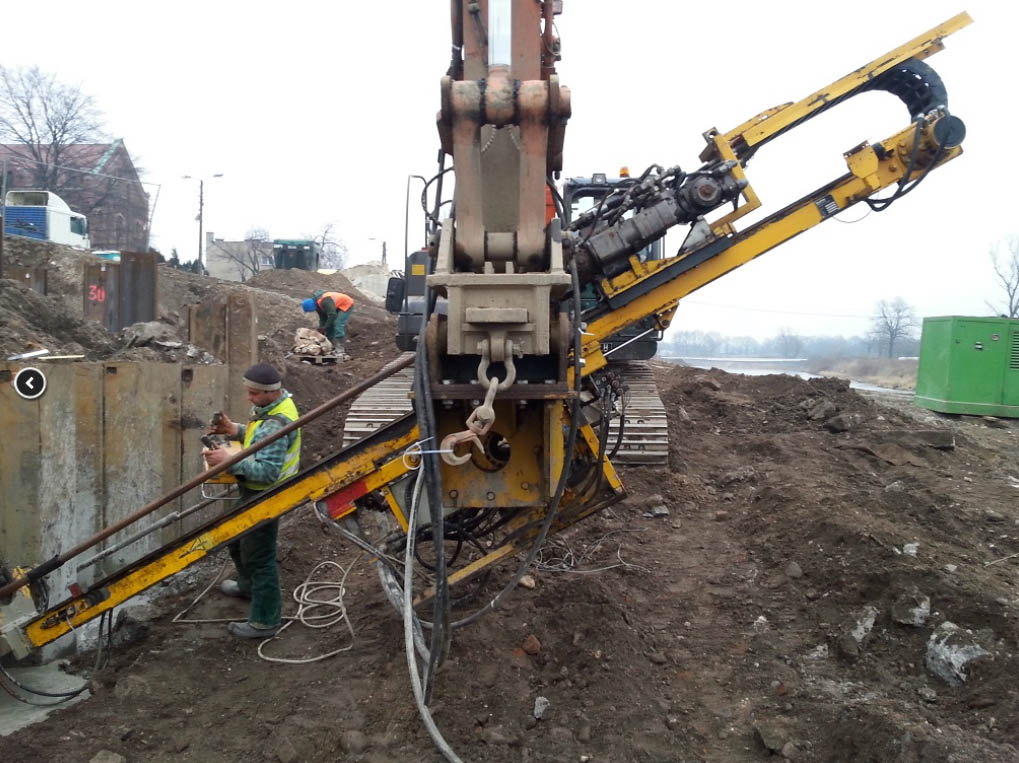 Wykonanie mikropali kotwiących dł. 15,0 m oraz pogrążenie ścianek szczelnych dł. 18,5 m w ramach zadania Przebudowa i udrożnienie przeciwpowodziowe rzeki Nysy Kłodzkiej